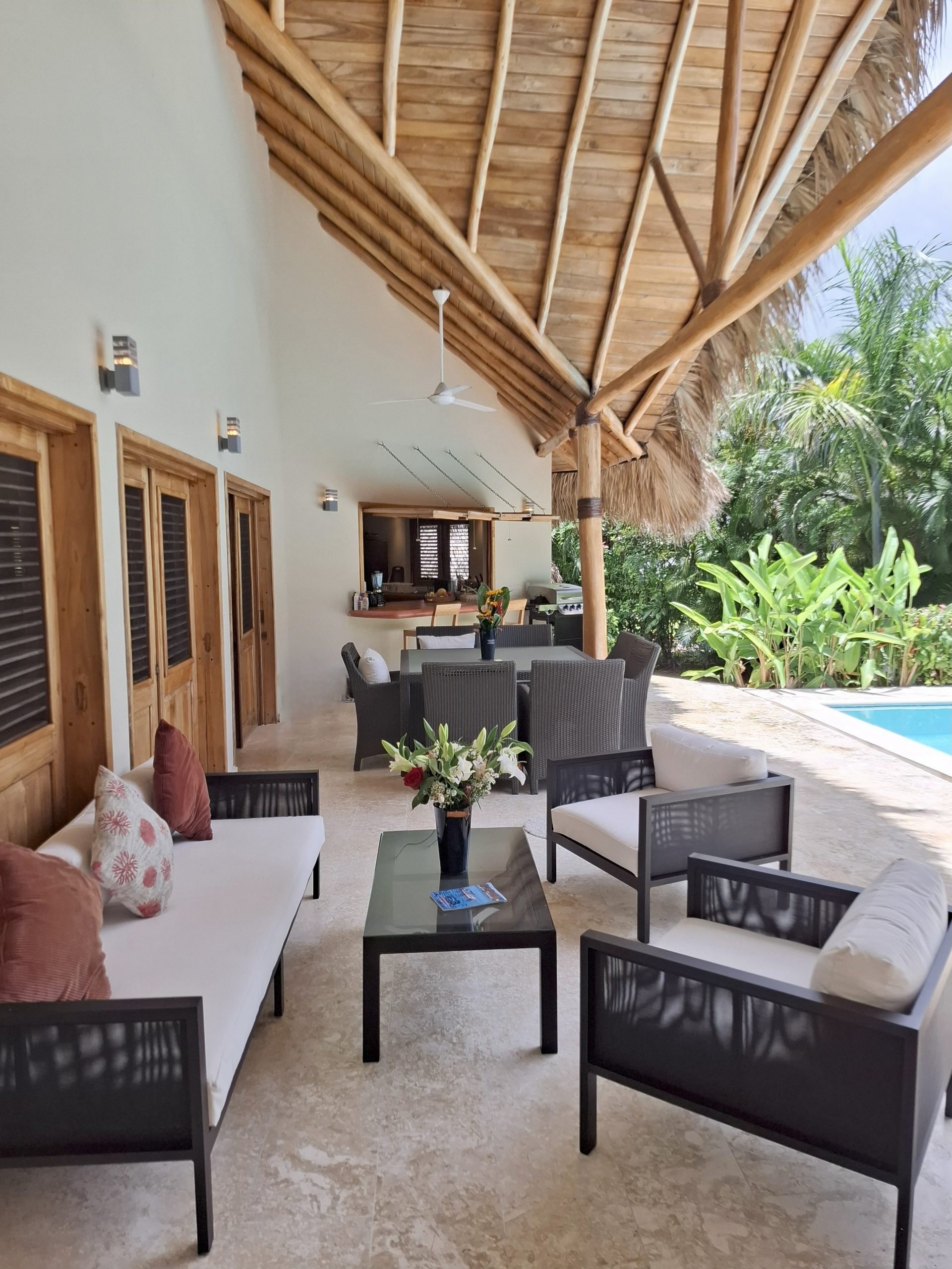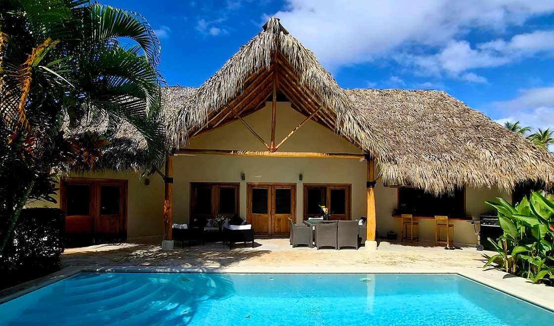 Cerca de la playa de Cosón, a 150 metros del mar, entre las palmeras y los árboles del viajero, se encuentra la villa 4 Palmas, en la magnífica y muy famosa residencia prestigiosa y segura en el paseo marítimo, Los Nomadas de Las Terrenas.
